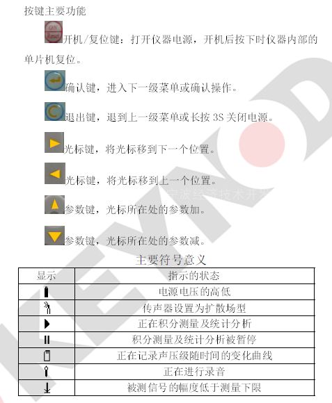 “校准声级”:声校准器的声压级,当用户所用声校准器的声压级不是94.0dB时,应将光标移到此处,按“参数”键调节到达声校准器的输出声压级为止。然后再移动光标至““灵敏度级”处,稍改一下灵敏度级后(否则按确认键不能保存),按“进入”键,仪器会自动将调节的结果保存起来,并在显示屏右下角显示“OK”。