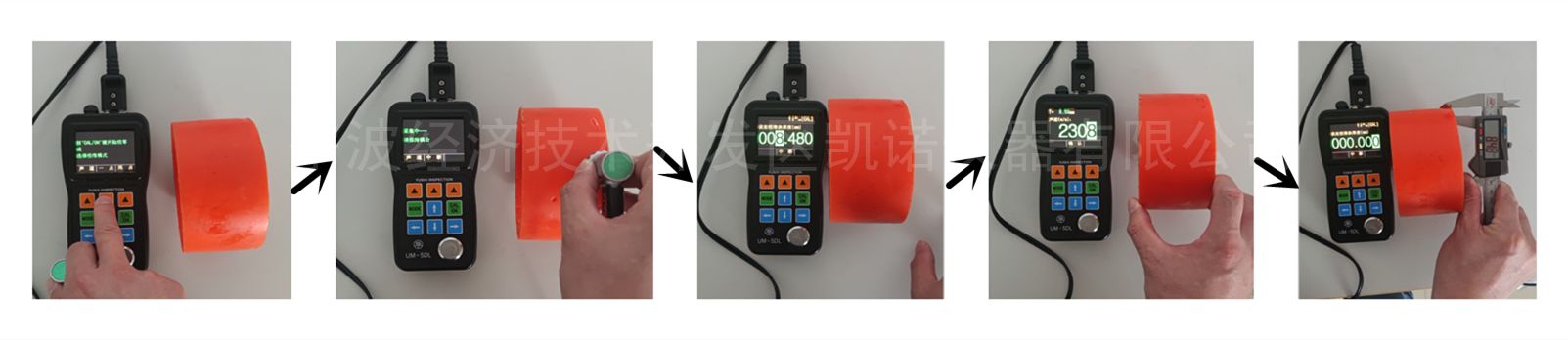 2.将探头一次放在零位试块和标准块上;3.用卡尺量出被测塑料的厚度;