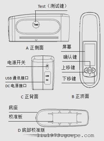 把光泽度仪放在底座上,然后把开关拨到“O”开启仪器,仪器会进行自动校准;校准通过后,仪器自动跳转到测量页面,可以进行两种操作: