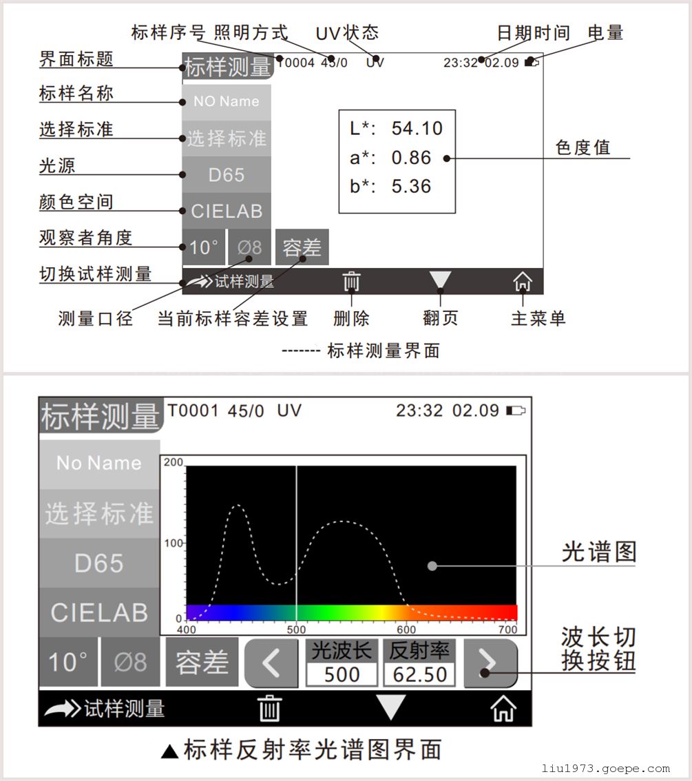 YS4510光栅分光测色仪上电开机并完成正确的黑白校正后,即可进行标样测量和试样测量。标样测量一般用于测量目标样品色度数据,试样测量则用于测量样品与目标样品的色差或对比色度数据。标样测量步骤如下(试样测量方法基本相同,本篇不做赘述):
