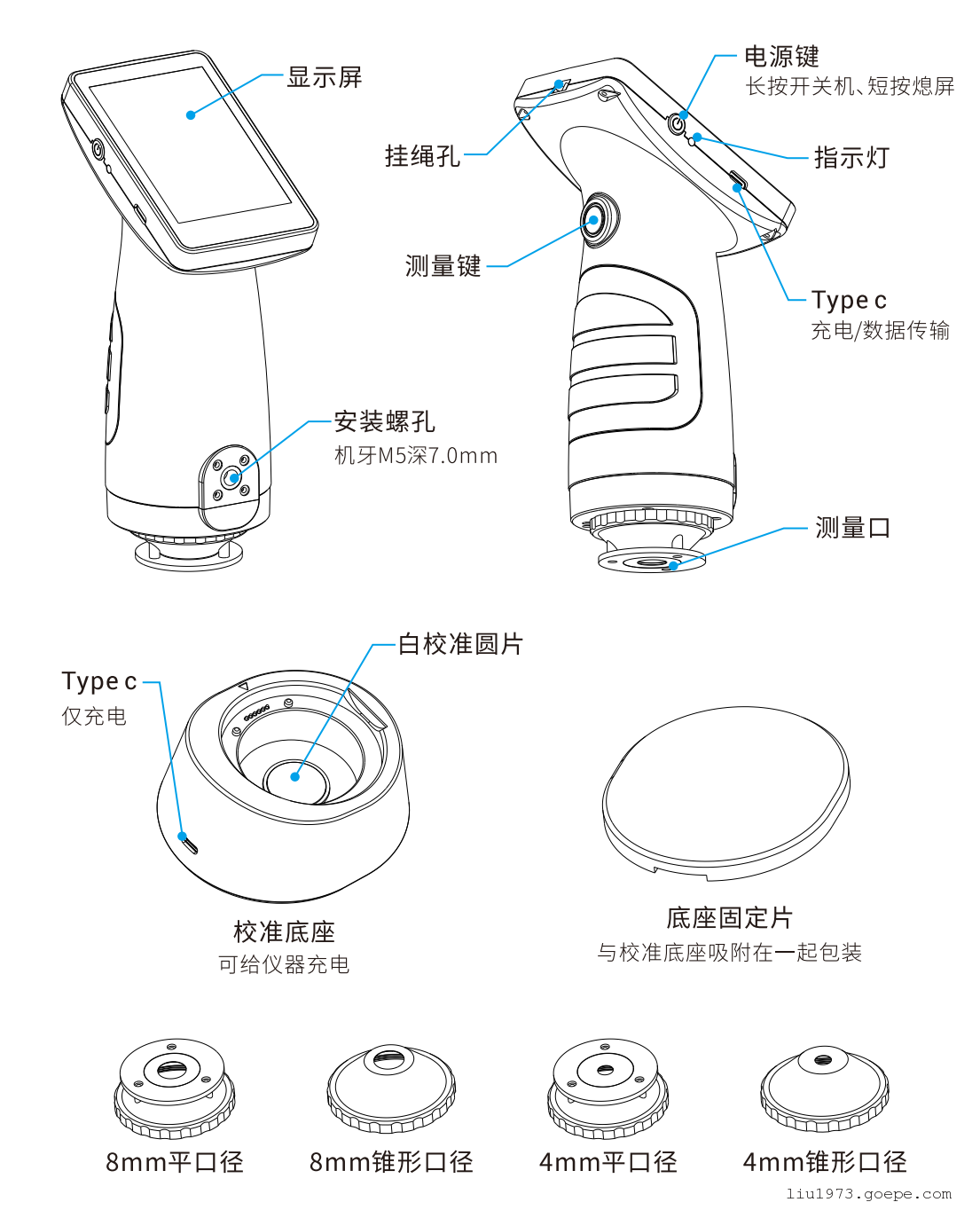 ⑧四种可选测量口径,用户可根据测量需要拆卸更换。