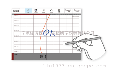 3.用手写笔(标准附件)或指尖在波形区域标记或添加信息,可选择输入的颜色和线宽,或者也可以从预设的信息列表中选择。
