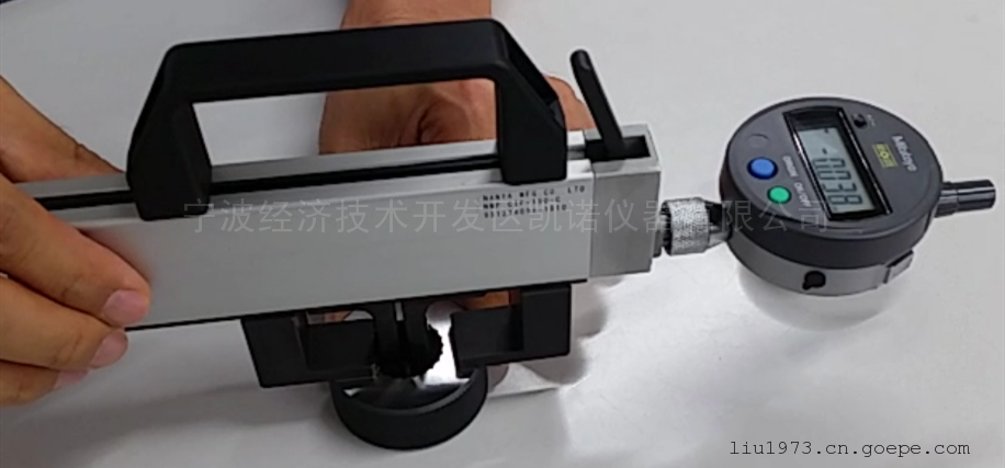 3.安装完成后,配上指示表,可以根据测量产品的大小来调整两个机械臂之间的距离。