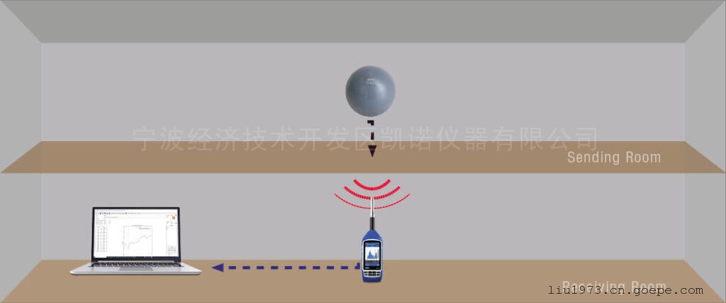 总结:橡胶球用于楼板或楼梯等构件评估,在多个测量点从 1 m(±1 cm)高度自由垂直落下。通过 XL2 或 XL3 分析仪在接收室内测量声压级,配合建筑隔声报告分析软件得到建筑隔声的测量、分析和报告(XL3分析仪可直接在仪器上读取结果)。