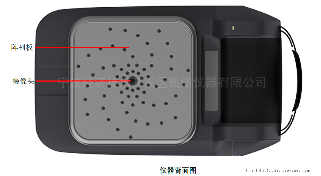 (二)仪器背面①阵列板:阵列板上排列 64 个 MEMS 麦克风,请勿戳动麦克风;