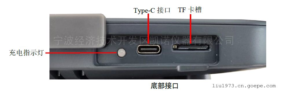 ③TF 卡插口:仪器支持64G TF 卡存储,注意未插入TF 卡时无法拍照、录制视频。