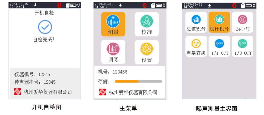 主界面按光标键选中“测量”,按确认键进入噪声测量界面,显示“总值积分”测量模块。(二)噪声测量