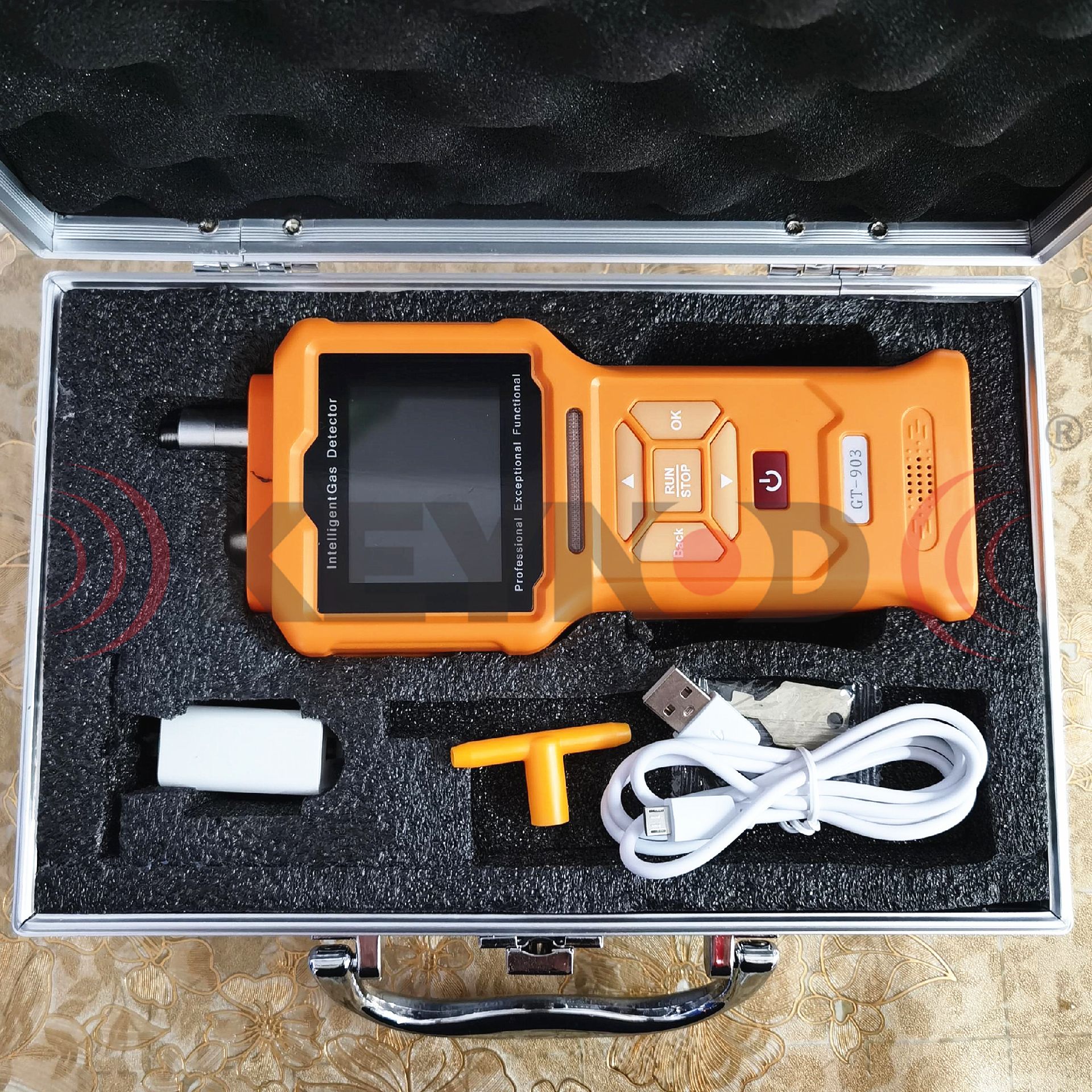 GT-903泵吸式复合气体检测仪,采用原装进口电化学\红外气体传感器和微控制器技术,内置微型抽气泵,响应速度快,测量精度高,稳定性和重复性好;全软件自动校准、传感器多达6级目标点校准功能,保证测量的准确性和线性,并且具有数据恢复功能;可同时检测1-4种气体,根据客户检测气体组合传感器;PPM、%VOL、mg/m3、mg/L四种浓度单位可自由切换,各项参数用户可自定义设置,操作简单;中英文菜单,声光报警,人性化人机操作界面。