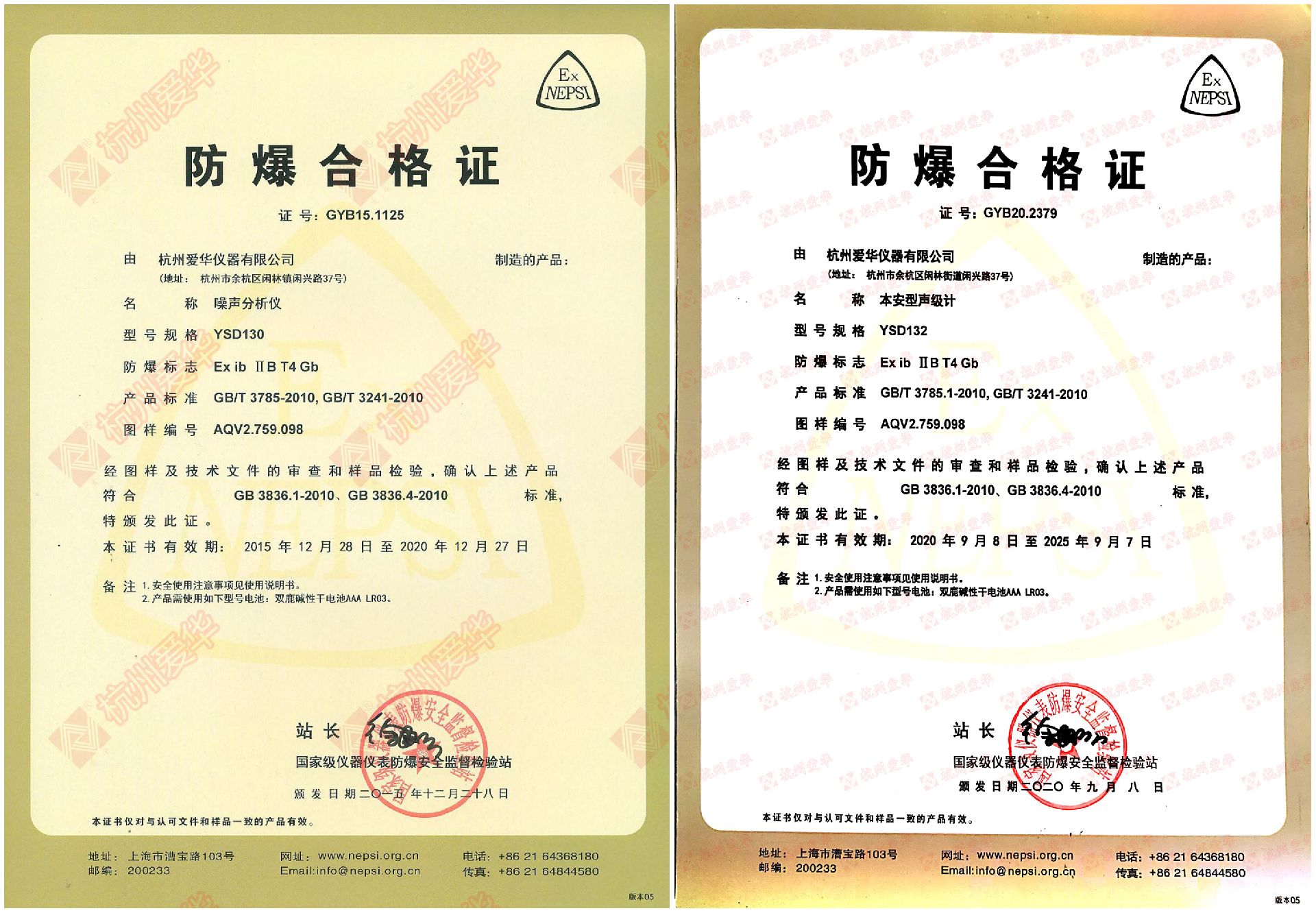 一、YSD130/YSD132爱华防爆噪声分析仪声级计 适用于职业卫生新标准,具有防爆功能,防爆类型分为本安型和矿用本安型,通过型式评价试验:2015S595-33/2020S297-33