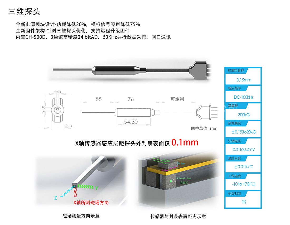 四、CH-3600G翠海三通道高斯计特斯拉计三维探头的图片介绍: