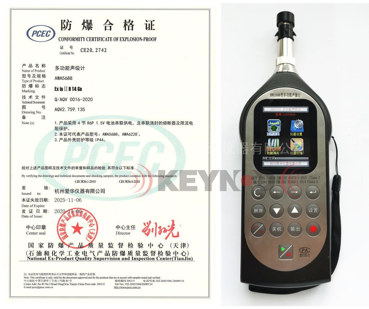 符合标准:GB/T 15952-2010,IEC 61252:2017,GB/T 3785.1-2010 2级,IEC 61672-1:2013 Class 2。