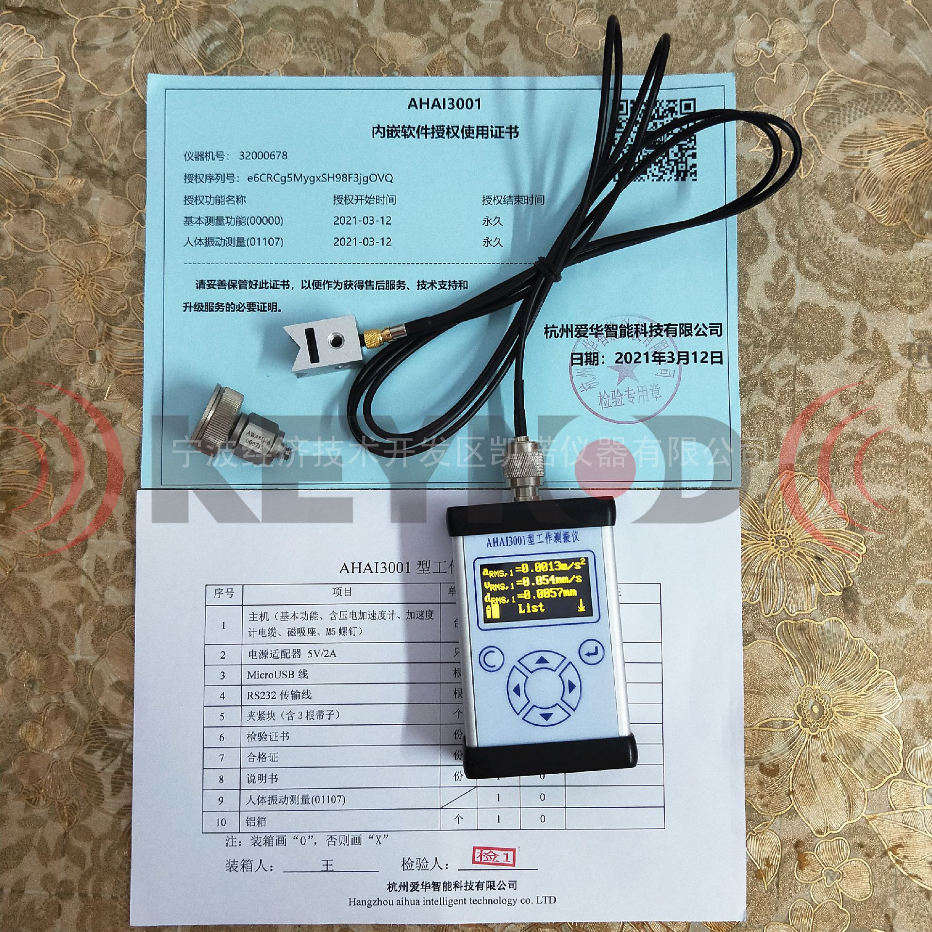 AHAI3001智能手传振动频谱分析仪主要功能包括RS232功能、积分功能、存储功能、数据采集功能、手传振动、1/3 OCT 频谱分析功能,用于现场振动测量及振动分析,手传振动测量,可替代点检仪和AWA5936-3测振仪。