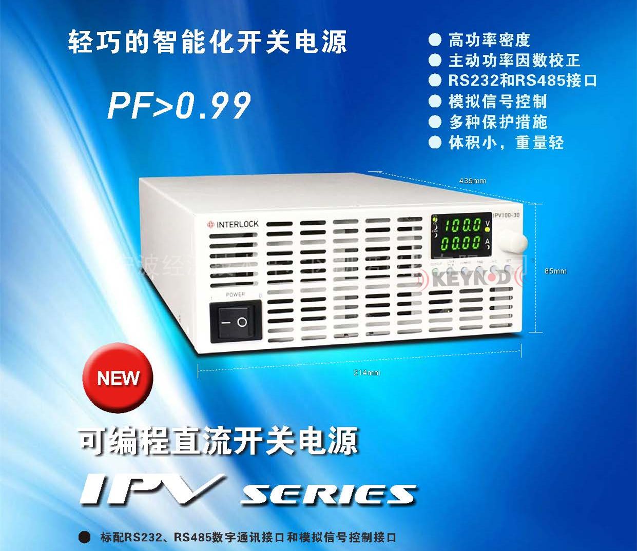 宁波英特罗克IPV系列电源是高功率密度、高性能的可编程开关电源。选择范围:电压12V~650V,电流3A~150A。IPV系列电源可广泛应用于实验室测试、生产线产品检测以及老化测试等。