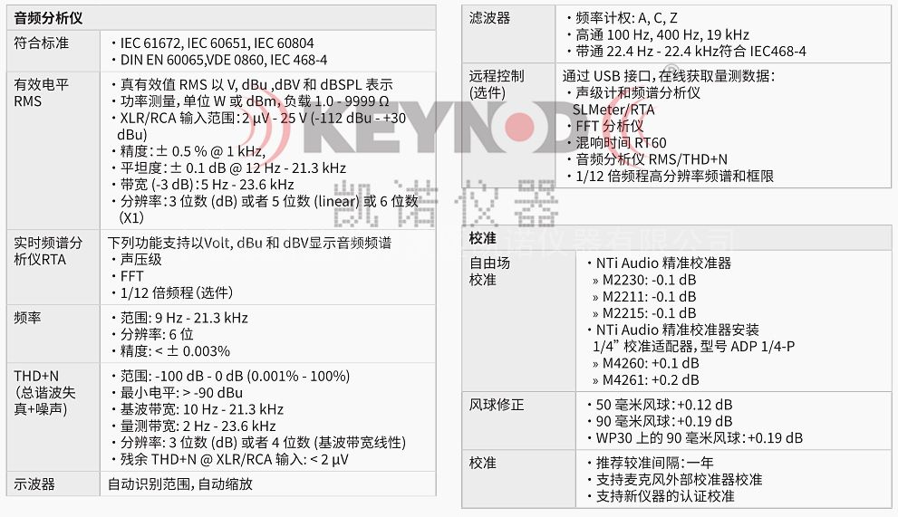 四、NTI AUDIO音频声学分析仪XL2音频分析仪的主要性能指标: