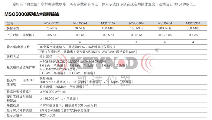 三、普源七合一数字示波器MSO5000系列性能指标: