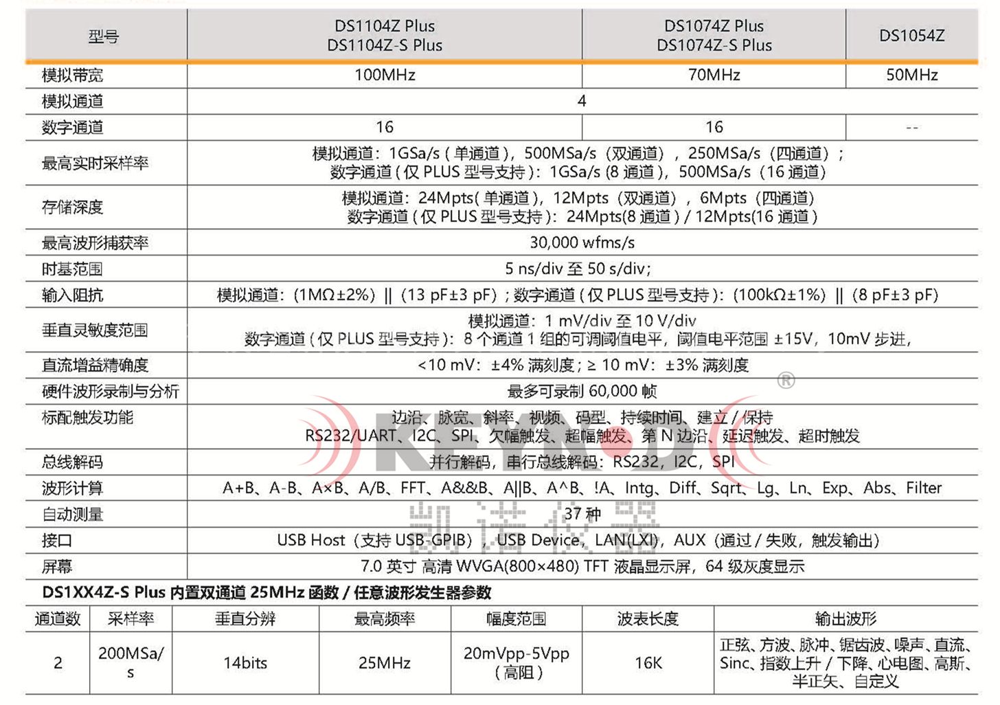 三、DS1000Z系列普源数字示波器DS1104Z Plus的性能参数: