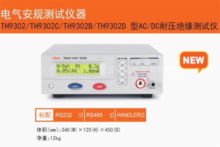 TH9302系列程控式交直流耐压绝缘测试仪可广泛应用于自动化测试系统、家用电器、变压器、电机、电气设备、电热器具、照明行业、新能源汽车、电子元器件等行业。