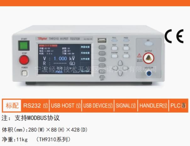 常州同惠TH9310单通道交直流耐压绝缘电阻测试仪是一款小功率经济型智能安规测试仪器,体积小、重量轻、外形美观、操作简便。