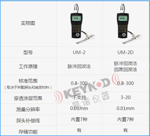 一、穿透涂层功能超声波测厚仪宇时UM-2D与经济型UM-1D的主要区别: