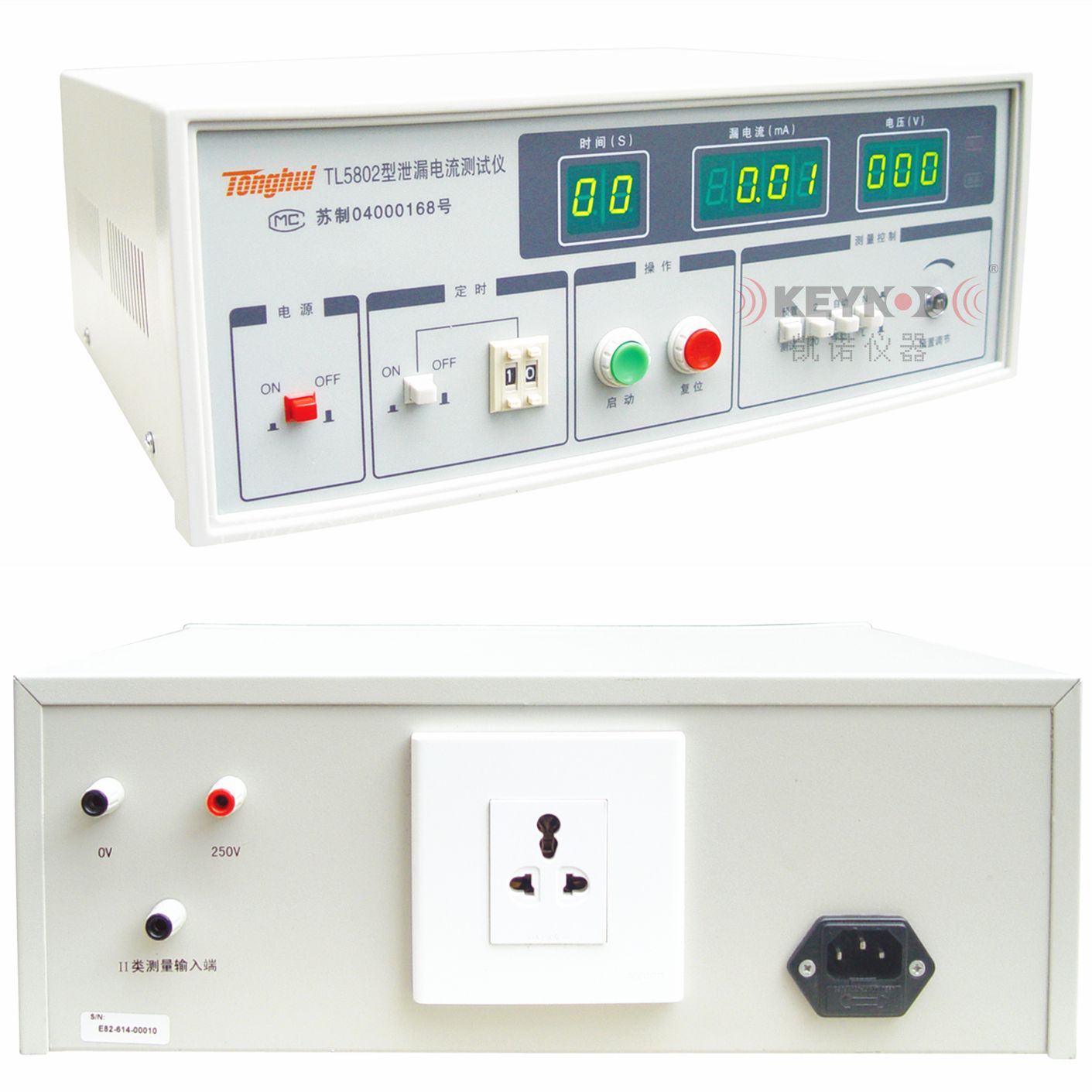 宁波同惠TL5802泄漏电流测试仪是用于测量电器的工作电源或其它电源,通过绝缘阻抗或分布参数阻抗产生的与工作无关的泄露电流,其输入阻抗模拟人体阻抗,产品适用于各种家用电器、电机、电子仪器、仪表、医疗、化工、整机等,以及强电系统的泄漏电流的测试、同时也是科研实验室、技术监督部门不可缺少的泄漏电流检测试验设备。TL5802泄漏测试仪产品是按照IEC、ISO、UL、JIS等国际国内的安全标准要求而设计,产品满足GB4706.1-2005,IEC60335.1-2004等国内外安规标准测试,符合JJG843-2007安规计量检定规程要求。