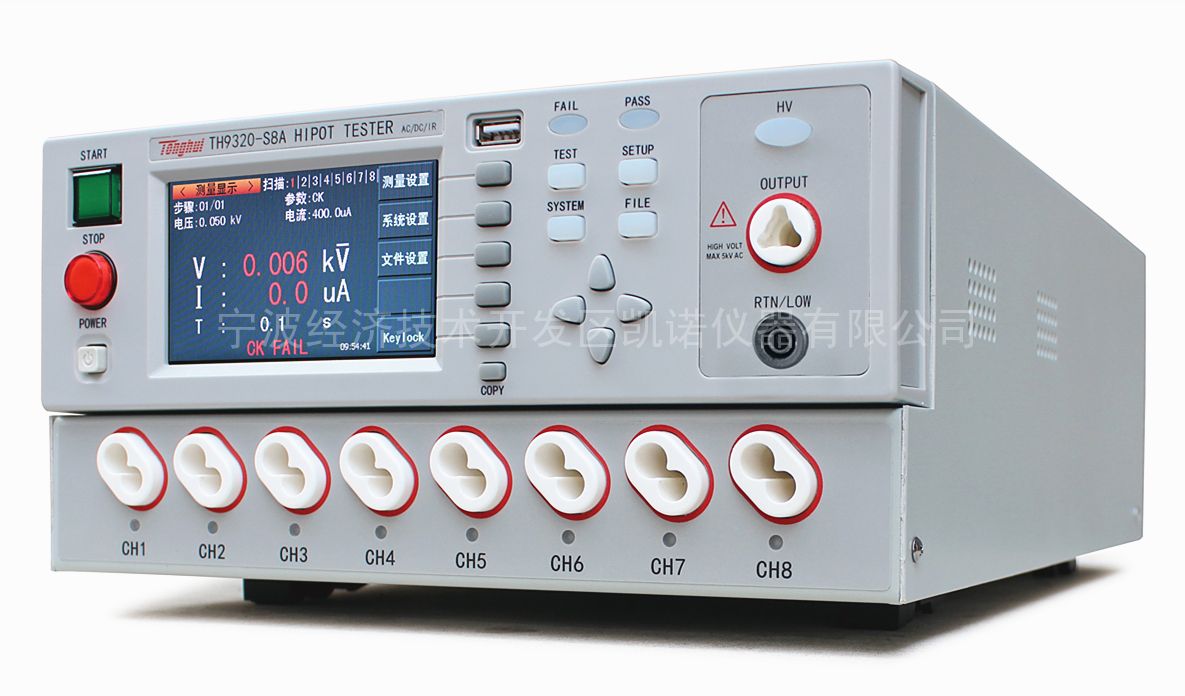宁波同惠多通道程控交直流耐压绝缘测试仪TH9320S8A具有交流耐电压测试、直流耐电压测试、绝缘电阻测试、开短路检测、接触检查等多种功能,性能强大、质量可靠。