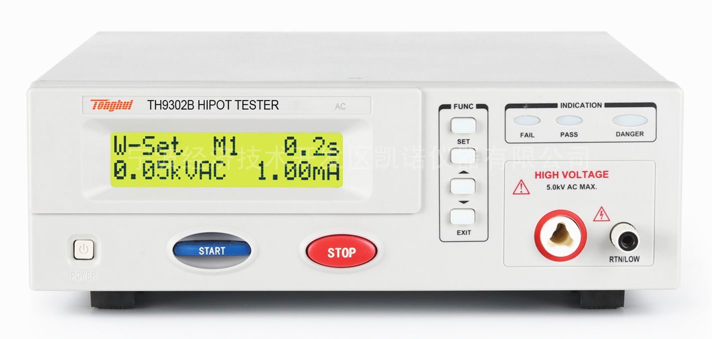 宁波同惠新款程控交流耐压绝缘测试仪TH9302B可以提供5kVAC/12mA的耐电压测试,拥有6种测试项目或组合,9个测试存储区。