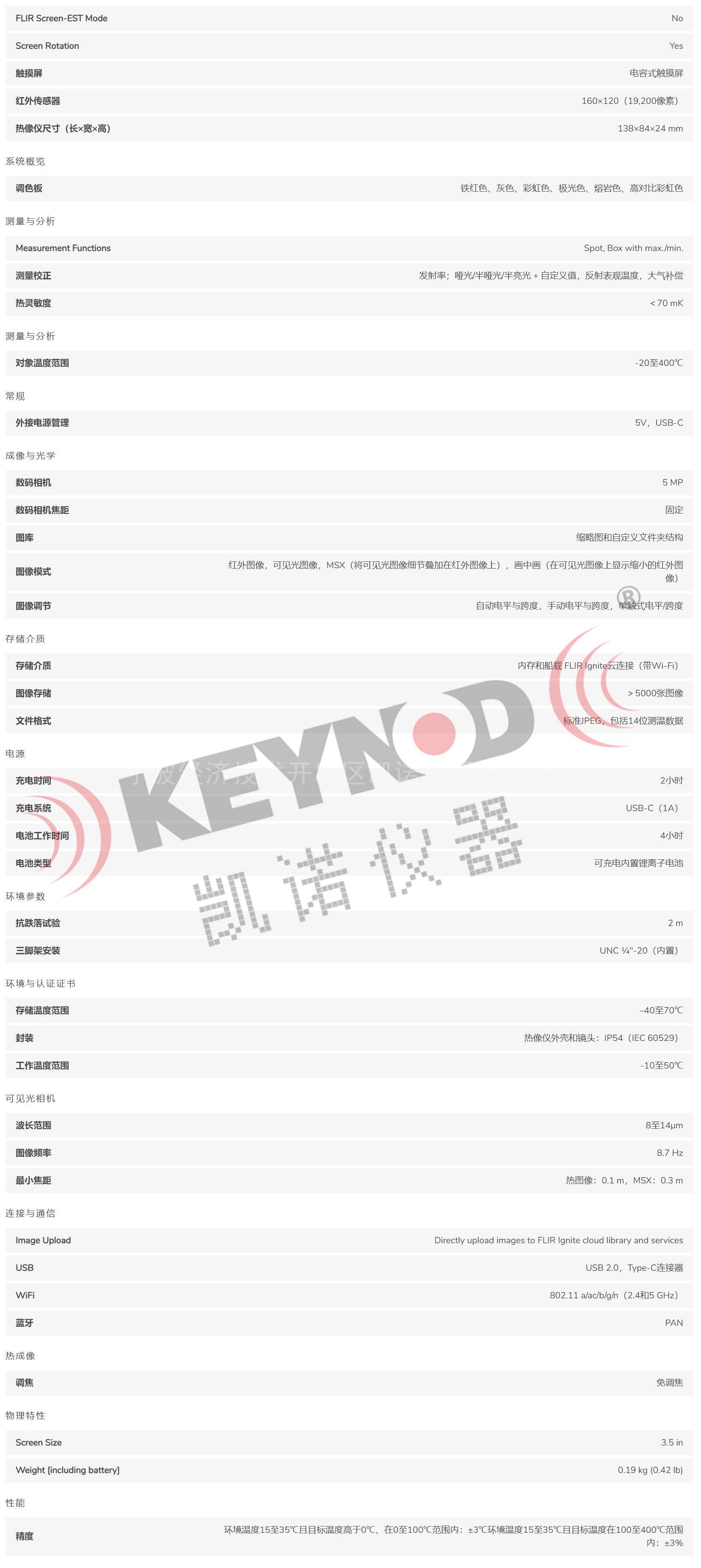 三、美国菲力尔FLIR新款口袋红外热像仪C5的主要性能指标: