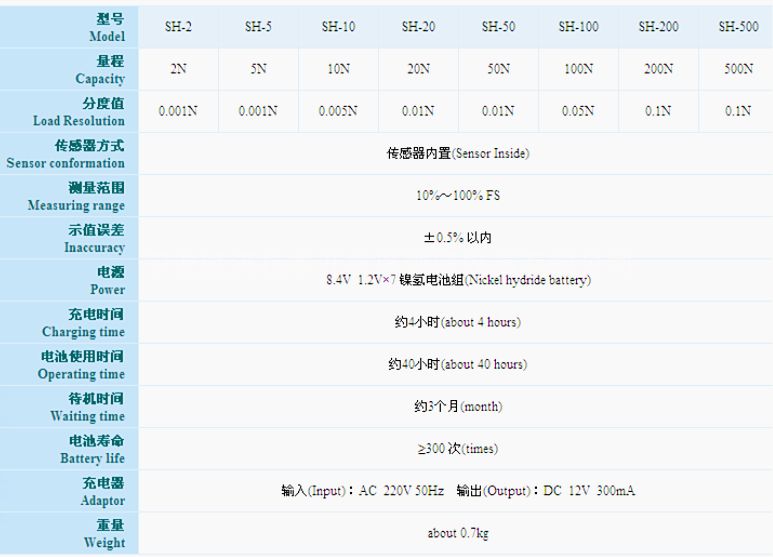 详细信息| 询价留言品牌:山度 型号:SH系列 类型:数字式 测量范围:2-1000 N 测量精度:见参数 重量:0.7 kg