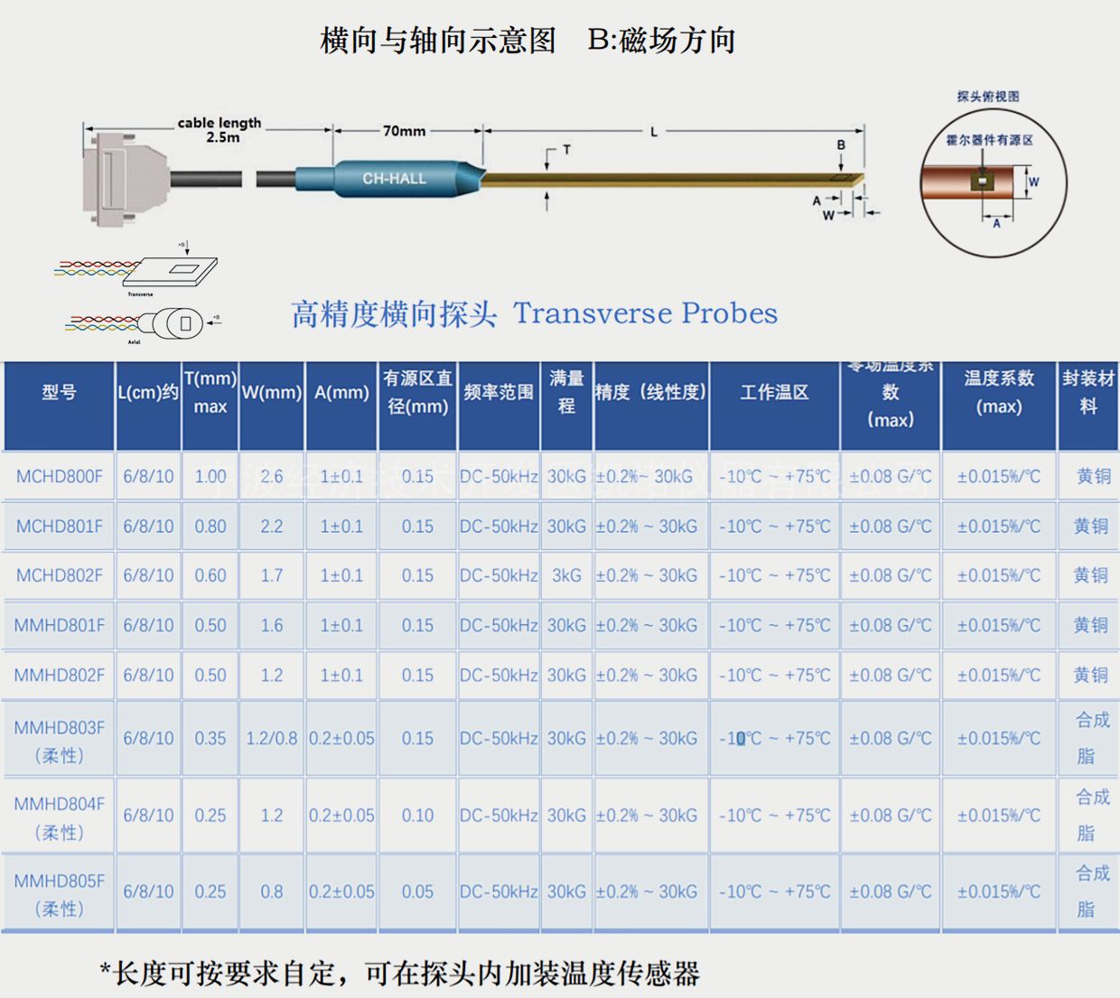 CH-1500数字高斯计采用高精度数字化仪表与高精度数字化Hall探头相结合的设计,使它的精度达到基本精度:读数的±0.30%±0.05%量程,基本分辨力 0.01mT。每支Ch-Hall/CH-MagTech探头均配备1块非易失性存储器,记录CH-1500所需各种探头信息。Ch-Hall/CH-MagTech 探头出厂前已经过校准,并已将校准数据写入存储器,因此同型号探头可以直接替换,无需重新进行探头校准。CH-1500高斯计可选配常规及耐高低温一维探头、单轴探头、横向探头。