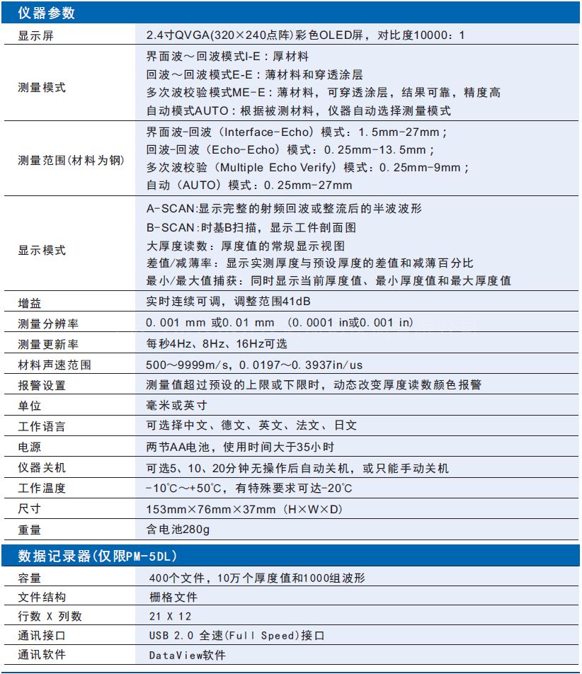 三、彩屏PM-5薄件超声波测厚仪技术指标: