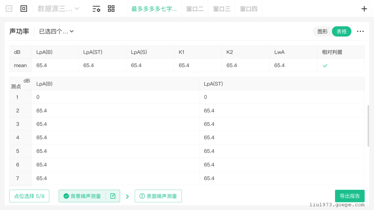 AHAI2023声功率测试仪可以通过单台仪器的噪声或振动通道数从1到20任意组合,它可以将采集到的信号进行声学或振动总值分析,统计分析、CPB分析、时间历程记录、声功率测量等,支持多点测量和多次测量,支持多种测量面形状和尺寸,具有自动背景噪声环境修正功能,测量完成可自动生成报表。
