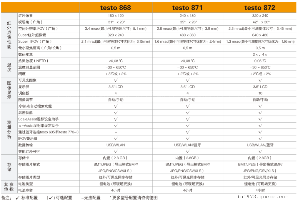 三、德图Testo 871红外热像仪综合参数: