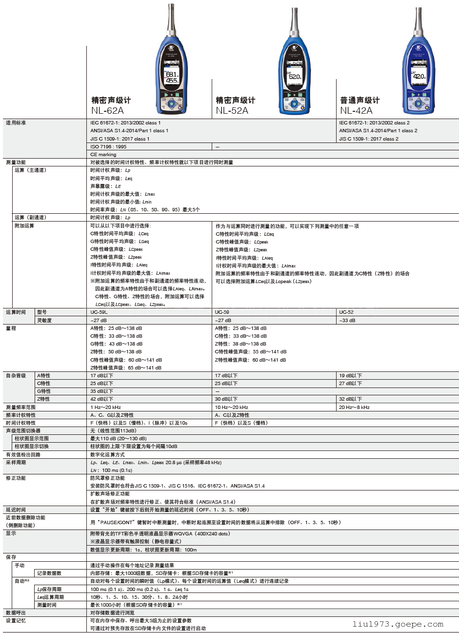 NL-62A/52A/42A是日本理音新款声级计,目前与老型号NL-62/52/42国内同步销售,主要是产品外形的变化,性能上基本相同。NL-62A型是日本理音多功能精密声级计,具有低频音测量功能。