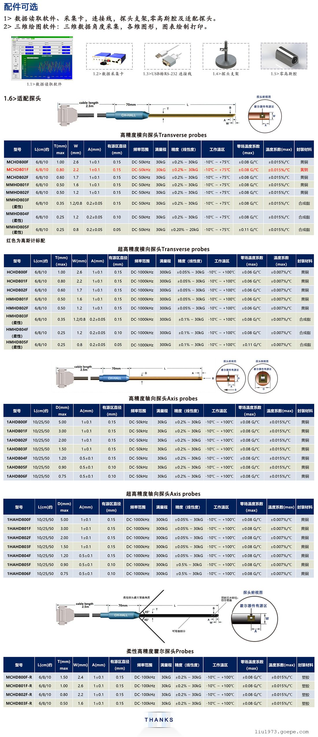 三、CH-1300型翠海数字高斯计特斯拉计可选配件与适配探头: