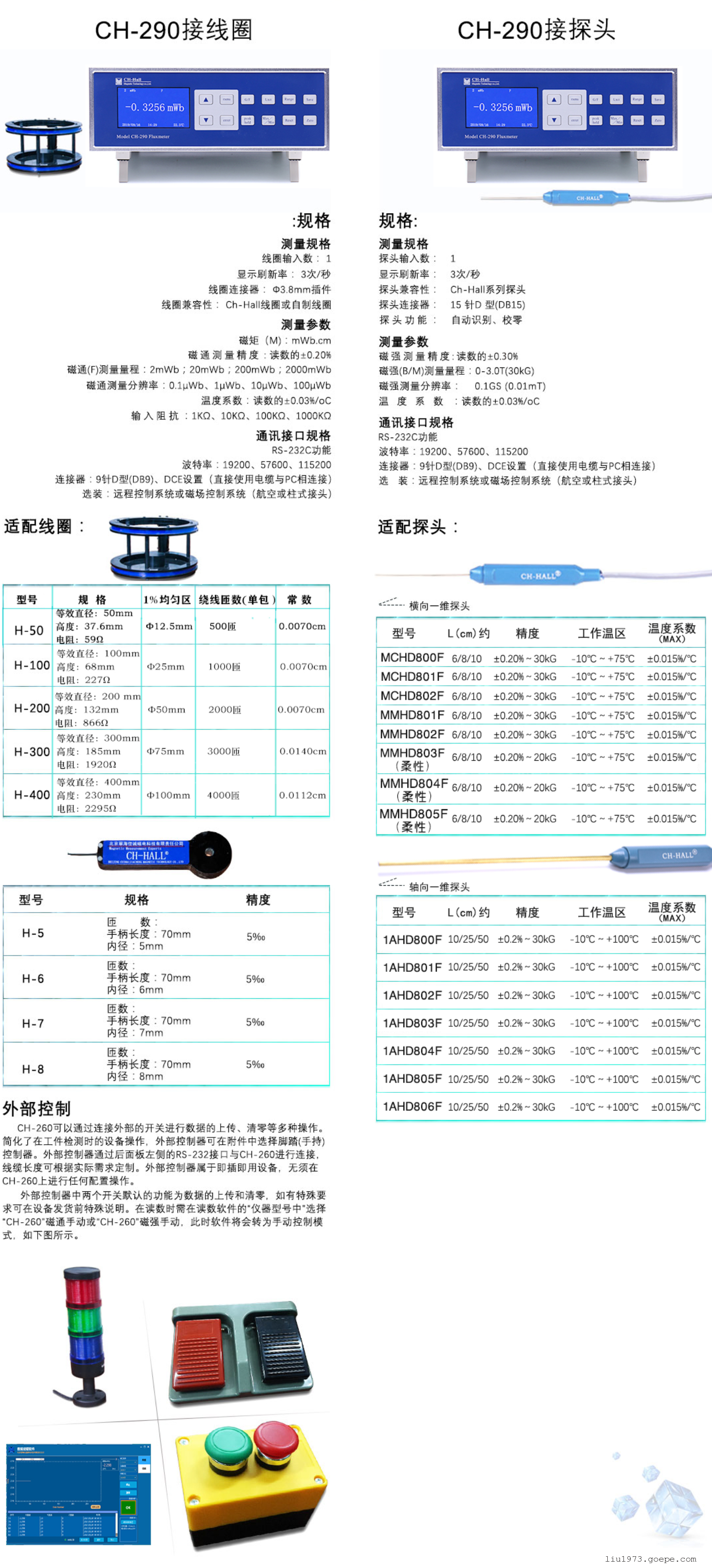 三、CH-290型翠海磁通计可选接线圈和探头介绍: