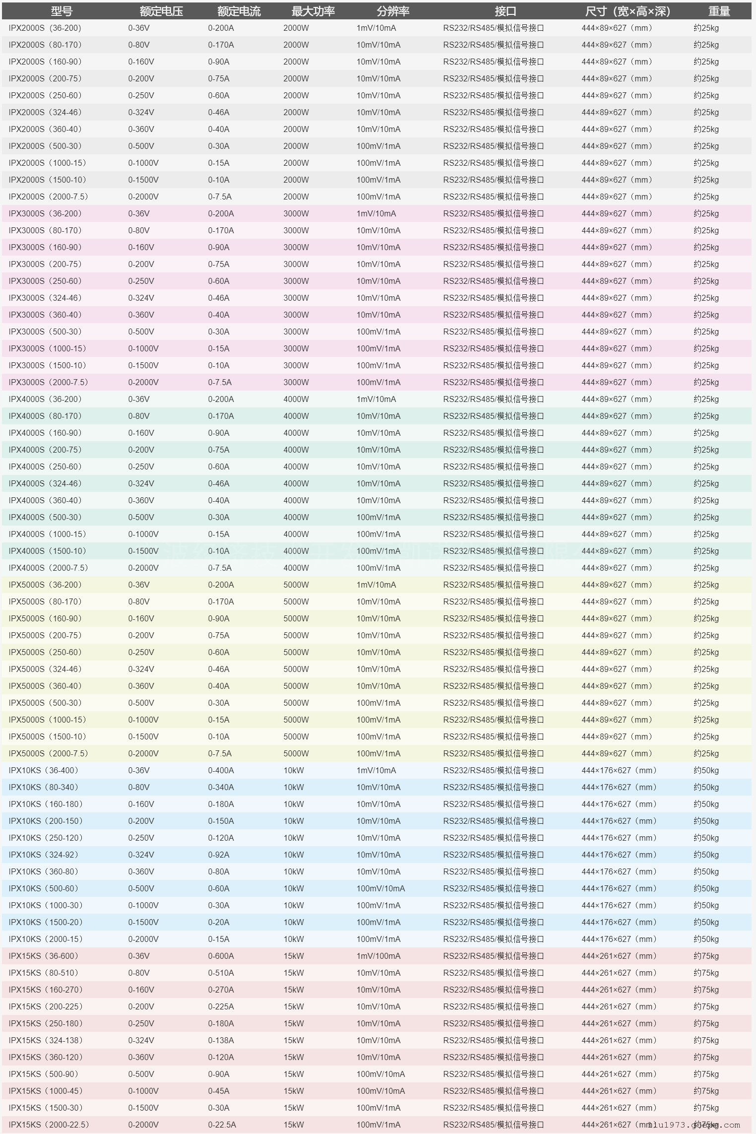 三、IPX-S系列宽量程可编程开关电源性能指标: