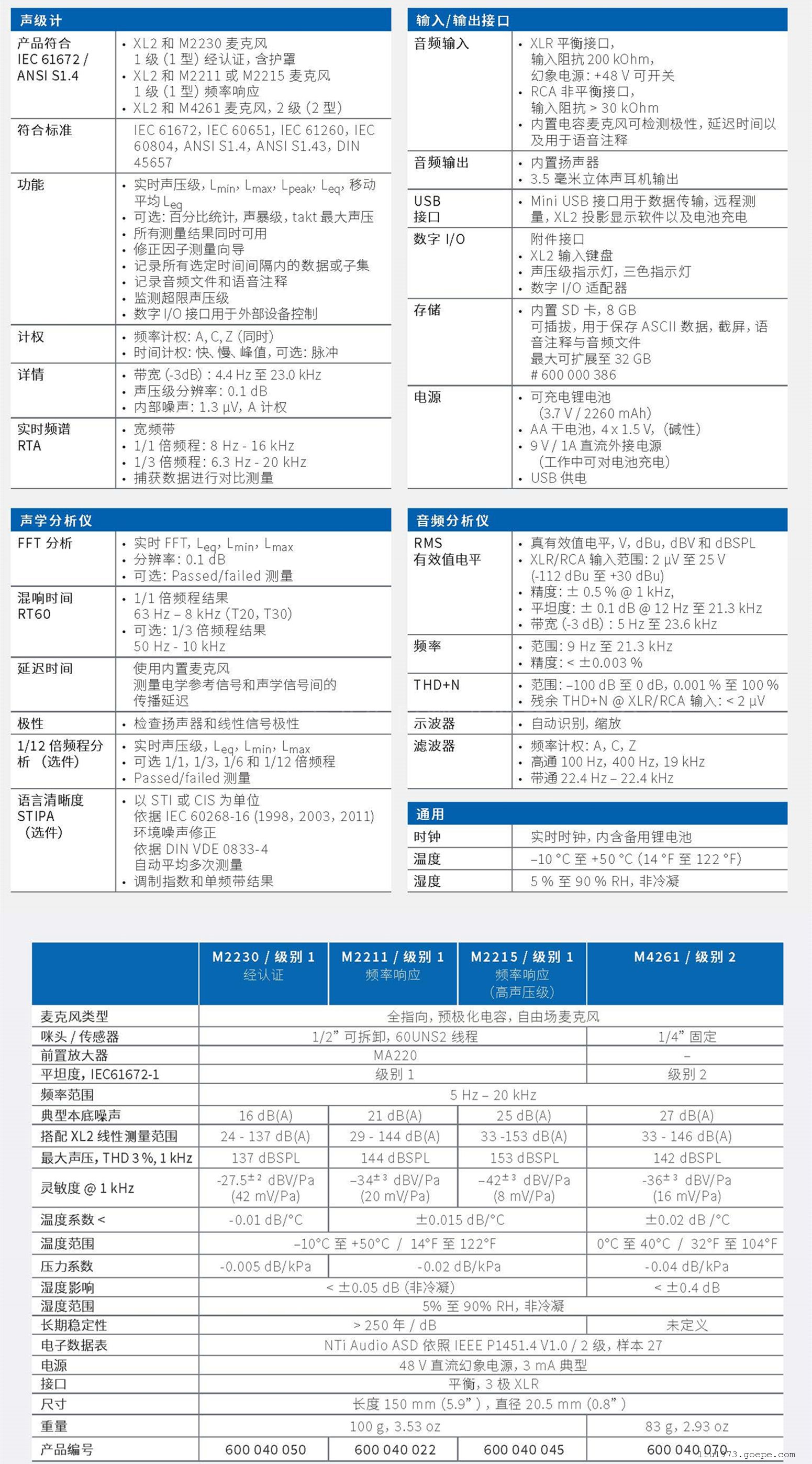 (1)XL2和麦克风组成了精密声级计。所有测量结果同时可用,包括Leq,Lmin,Lmax,和LCpeak等,支持频率计权A,C,Z和时间计权快速,慢速和脉冲(选件)。