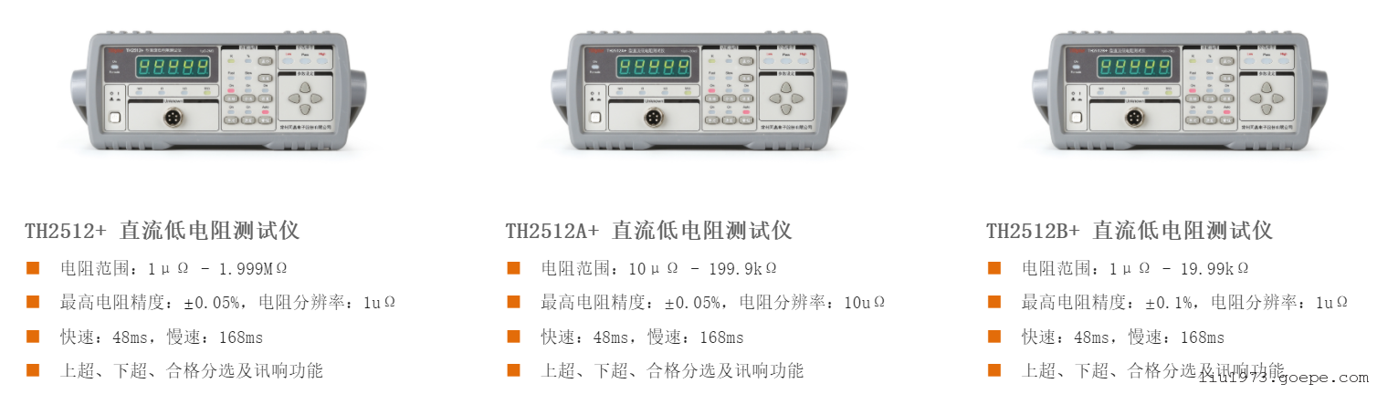 二、直流低电阻测试仪同惠TH2512+系列技术参数对比:型号