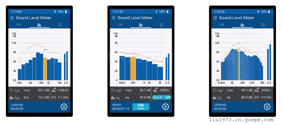 2.倍频程:8 Hz - 16 kHz,1/3 倍频程:6.3 Hz - 20 kHz