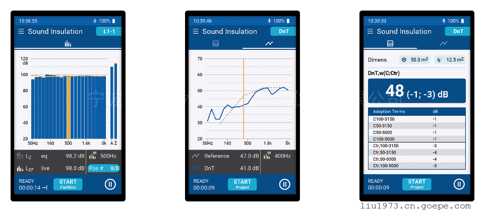XL3声级计配套建筑声学模块可以直接在仪器上测量空气声隔声,撞击声隔声和外墙隔声。只需在声源室和接收室执行测量,即可现场在仪器上查看建筑隔声结果。对于共用声源室或接收室的隔墙,XL3 提供数据复用功能,比如直接使用之前测量的混响时间或背景噪声数据,让你事半功倍。为了避免人体本身的声吸收影响结果,你可以离开测量房间并通过联网的手机直接控制室内的仪器。借助建筑隔声报告分析软件,可以直接生成随时可供签发的建筑隔声报告。