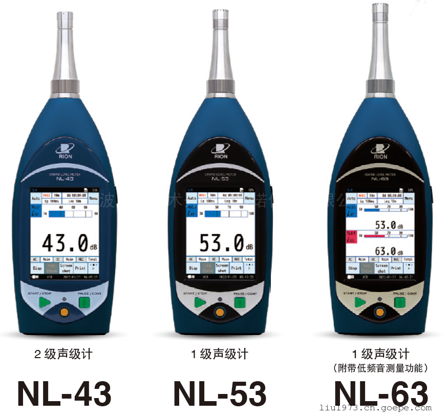 *安装全天候防风罩或防雨防风罩可提高整体的防水性能,使麦克风部分相当于符合IPX3规范。一、NL-43/53/63理音新款声级计产品介绍: