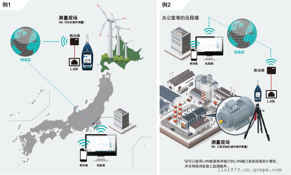 2.LAN功能:允许远程操作声级计和远程监控实时条件;