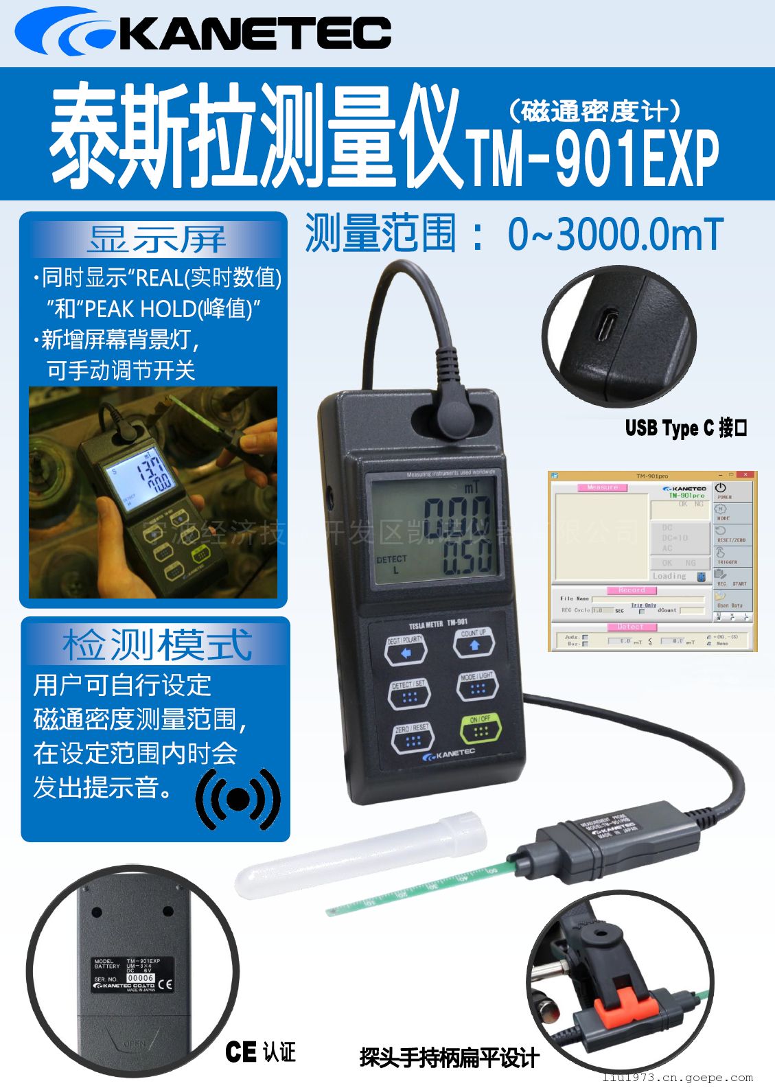 *TM901-EXP强力新款高斯计配套探头TM-901PRB和TM-901AXL与强力历代泰斯拉测量仪(TM-501、TM-601、TM-701、TM-801)兼容。