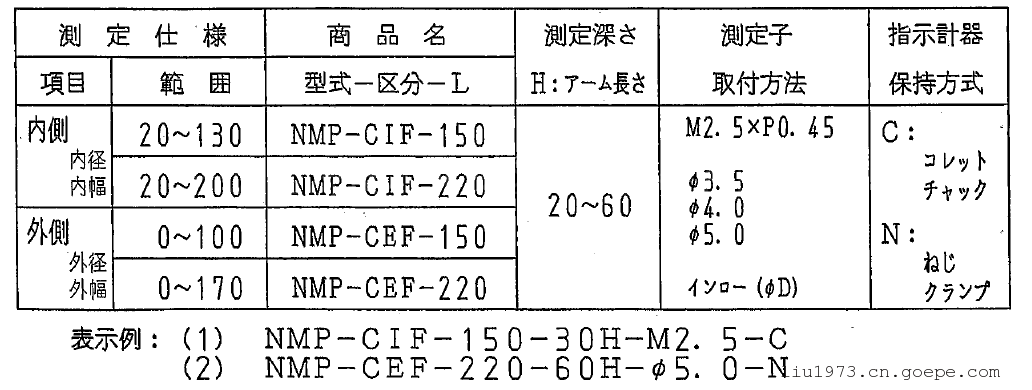 宁波凯诺仪器代理销售日本南谷制作所NNY齿轮跨棒距比较测量仪,该仪器可对所有内径、外径进行稳定准确的尺寸测量(比较测量)。其中NMP-CIF-150/220为内齿轮测量仪,规格参数参见下图示: