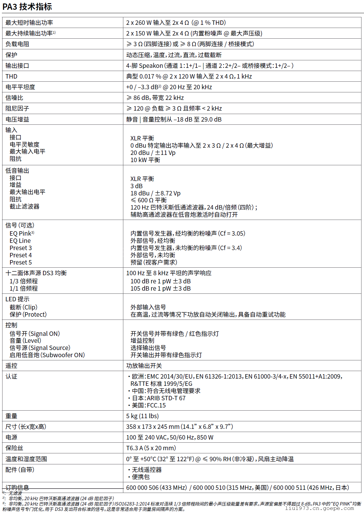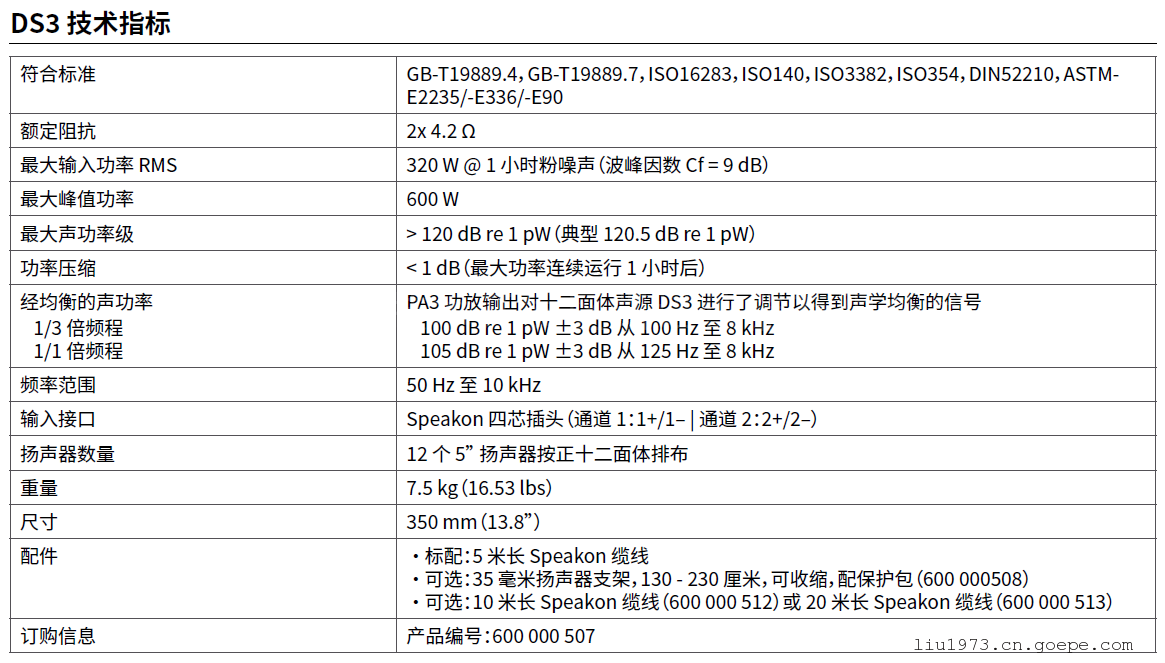 三、NTI AUDIO十二面体扬声器套件之PA3产品介绍与参数:
