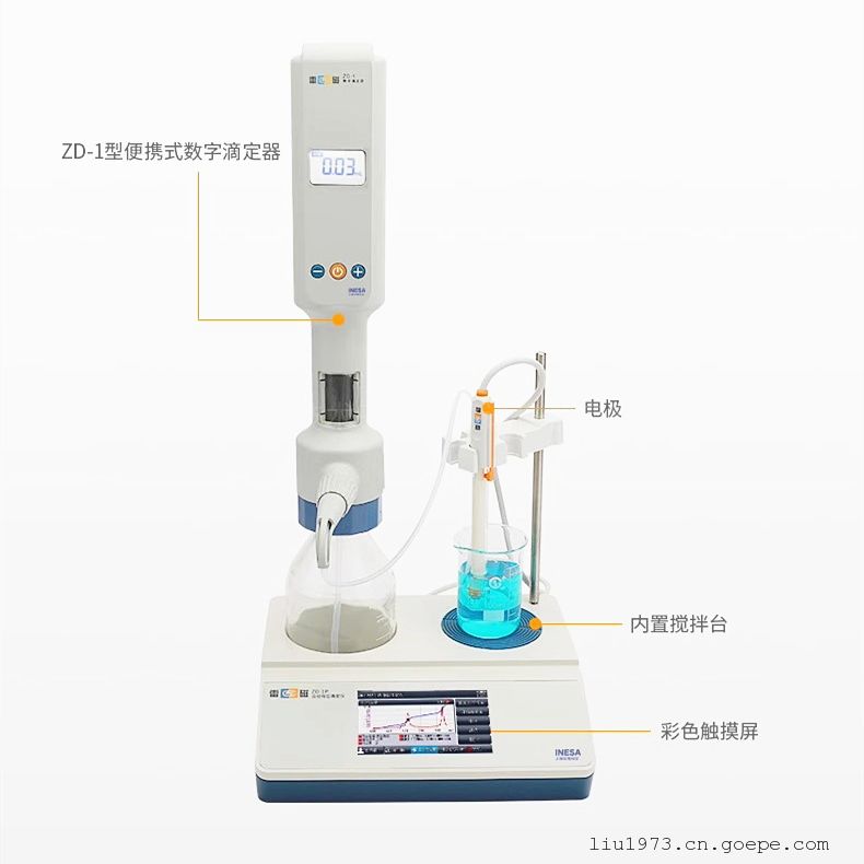 上海雷磁ZD-1数字滴定器可以单独使用,也可配套进行测试。相关产品:雷磁ZD-1P自动电位滴定仪。