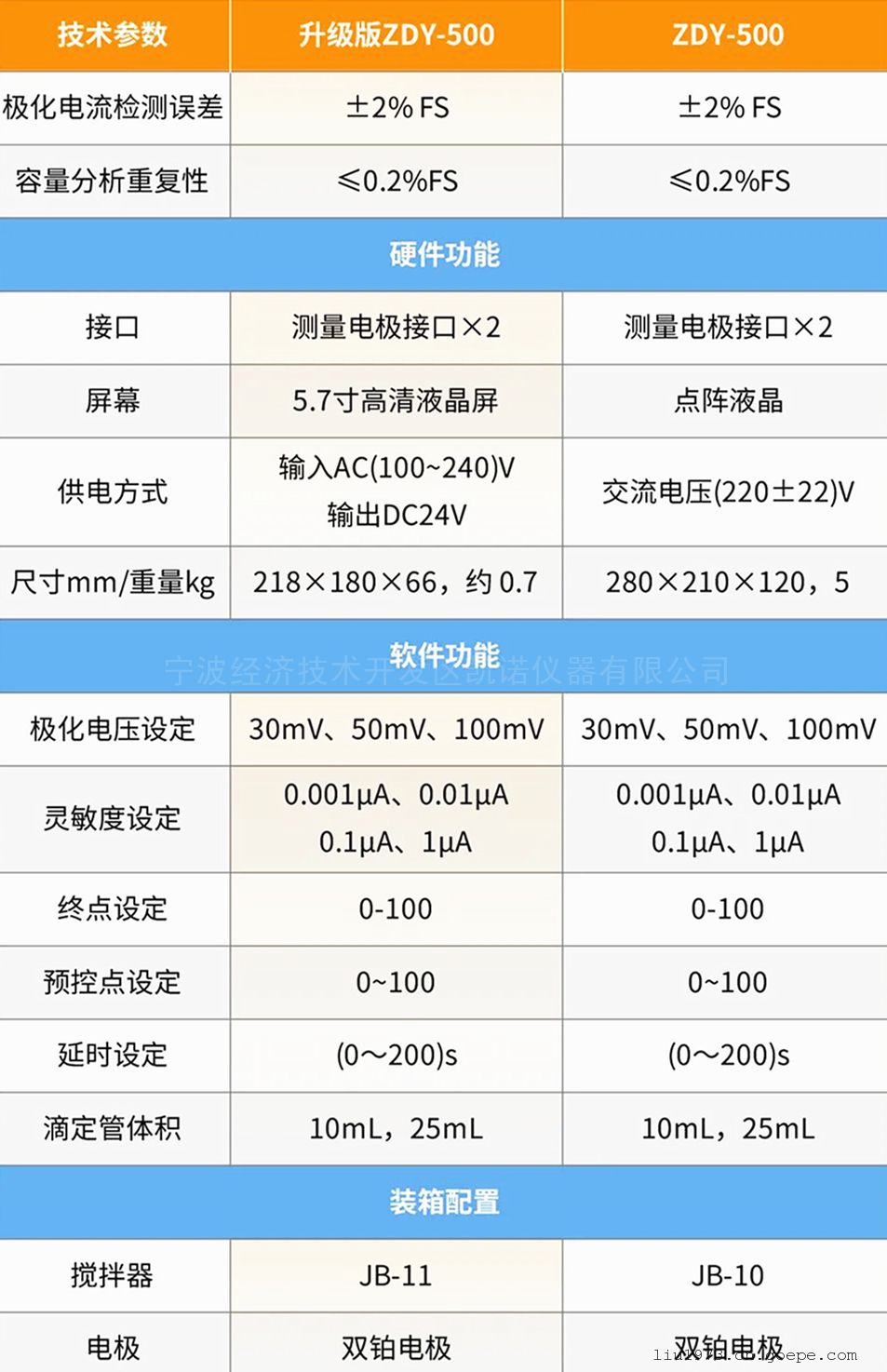 三、雷磁新款自动永停滴定仪ZDY-500技术指标: