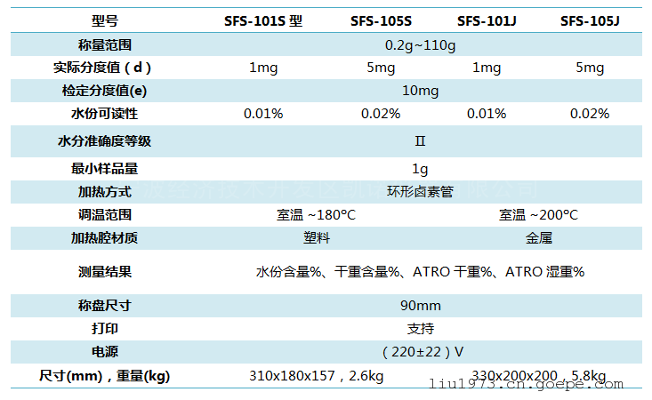 三、卤素水分检测仪雷磁SFS-105J技术参数: