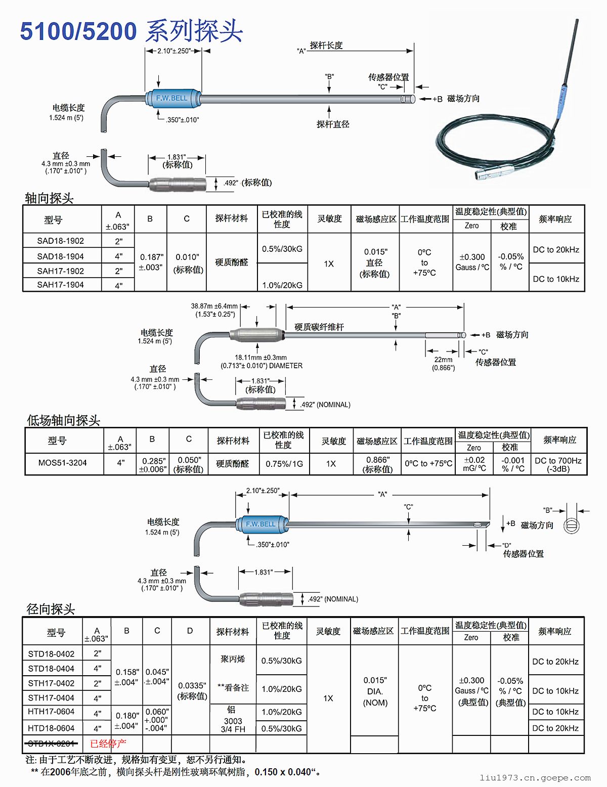 三、5200系列F.W.BELL贝尔手持式高斯计特斯拉计型号参数:型号