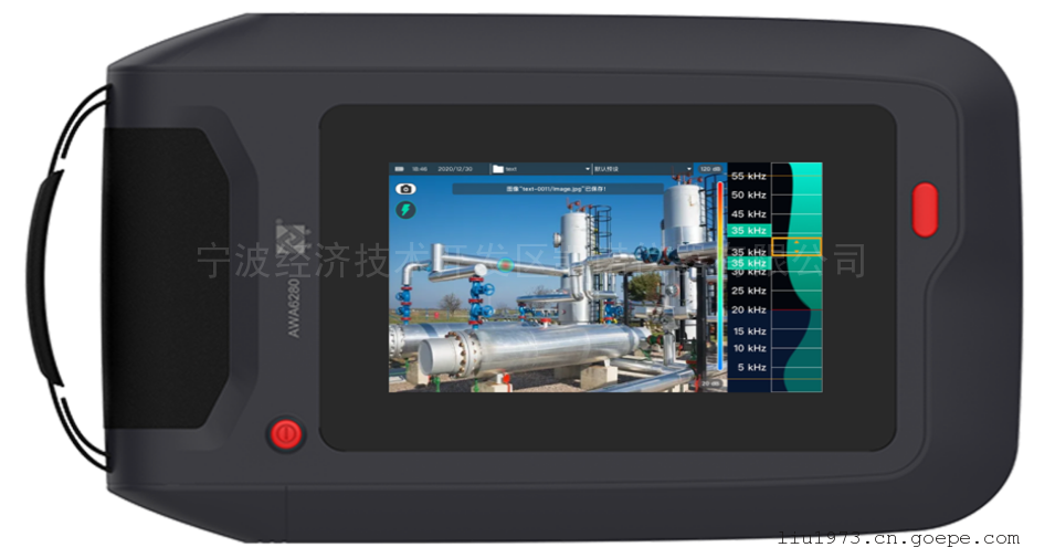 当管道或压缩容器内的气体发生泄露时,泄漏所引发的声源频率一般在20 kHz以上,这超出了人耳的听力上限,人耳无法判断方位。采用声学成像仪能够检测出超声频率,对可能发生泄露的部位进行扫描,快速查找发生泄露的部位。